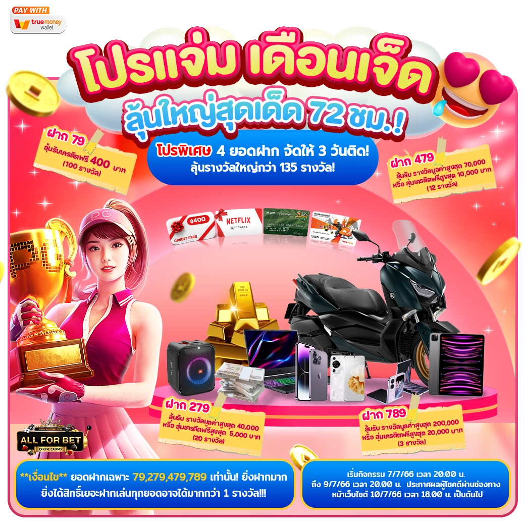 นอกจากนี้ยังมีโปรโมชั่นและสิทธิพิเศษมากมายสำหรับสมาชิกทั้งเก่าและใหม่ ตั้งแต่โบนัสต้อนรับ เครดิตฟรี คืนยอดเสีย และกิจกรรมลุ้นรางวัลต่างๆ ที่จัดขึ้นเป็นประจำ ช่วยเพิ่มโอกาสในการทำกำไรและสร้างความคุ้มค่าให้กับการเดิมพัน
